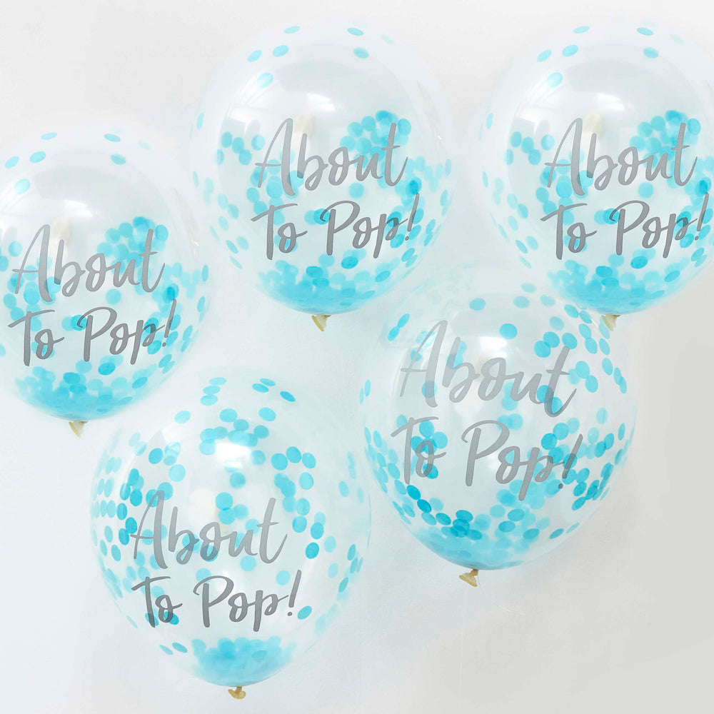 The cutest balloons for an adorable baby shower our Ginger Ray 'About to pop' blue confetti balloon will be a fun finishing touch to your party. Wow the mummy to be and have these dotted around your venue for a dreamy baby shower!