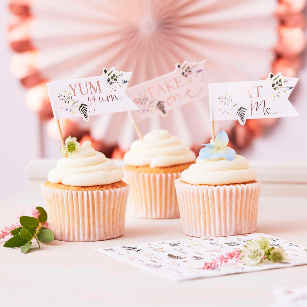 These cute Ginger Ray floral food picks are the cherry on top of your tea party cupcakes!