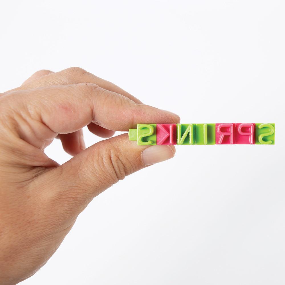 This alphabet embosser set is an easy-to-use, food-safe way of creating names, sayings and more by embossing directly into doughs and fondants. Simply click together, press and cut!