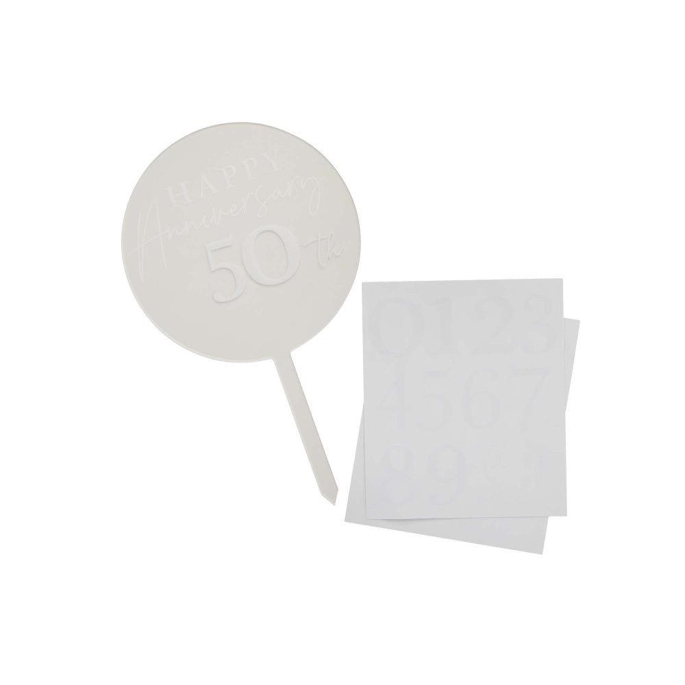 This Anniversary Customisable Acrylic Cake Topper adds a personal touch to any milestone celebration. Made from sleek, durable acrylic, this round transparent cake topper can be customised with the number of years to suit your anniversary perfectly.
