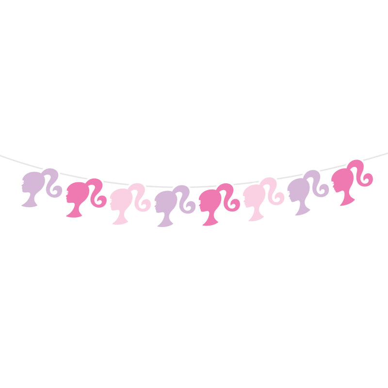 Add instant glamour to your party with this chic Barbie Silhouette Garland! Featuring the classic Barbie profile in stylish cut-outs in shades of pink and purple, this garland makes the perfect decoration for walls, tables, or photo backdrops.