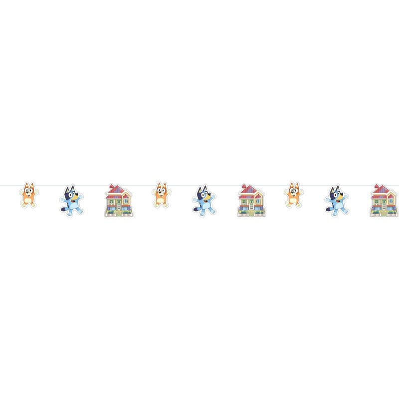 Bring colour and fun to your party with this Bluey Ribbon Garland! Featuring Bluey, Bingo and Bluey's house, this cheerful decoration is perfect for hanging across walls, tables, or doorways to instantly transform your space.