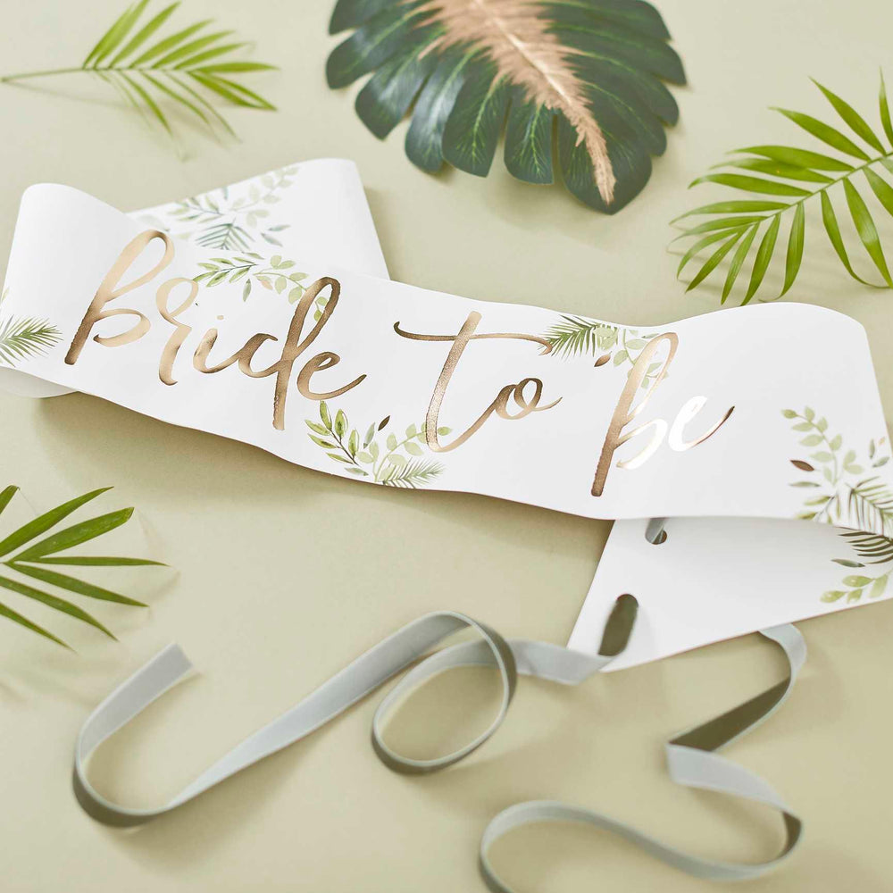 Ensure the beautiful bride-to-be celebrates in style on her hen do with our stylish Ginger Ray gold foiled botanical Bride To be sash.