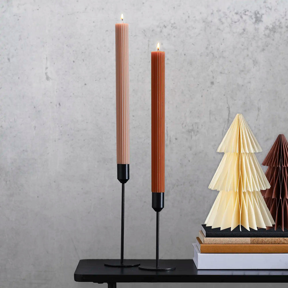 2 x Tall ribbed candles, 27.5cm (H) x 2.3cm (W)