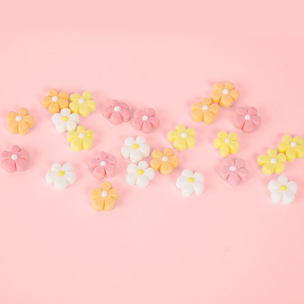Effortlessly add charm and flair to your baked creations with SPRINKS cute pack of 24 colourful flower icing decorations. An edible way to quickly elevate your baking on cupcakes, cookies and cakes.