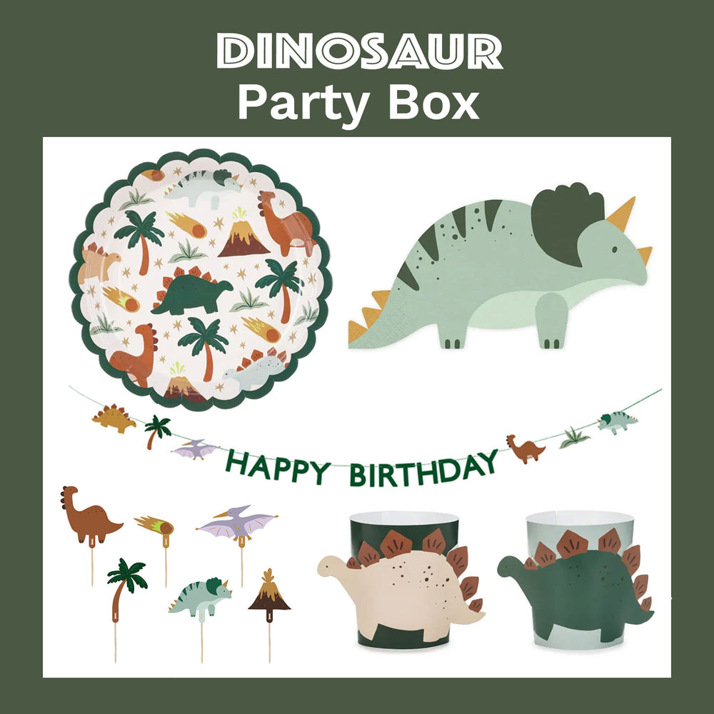 Perfect for birthdays, or any dinosaur fan’s special day, the Dinosaur Party Box has everything you need to create a coordinated setup without the hassle – just open, decorate, and party.