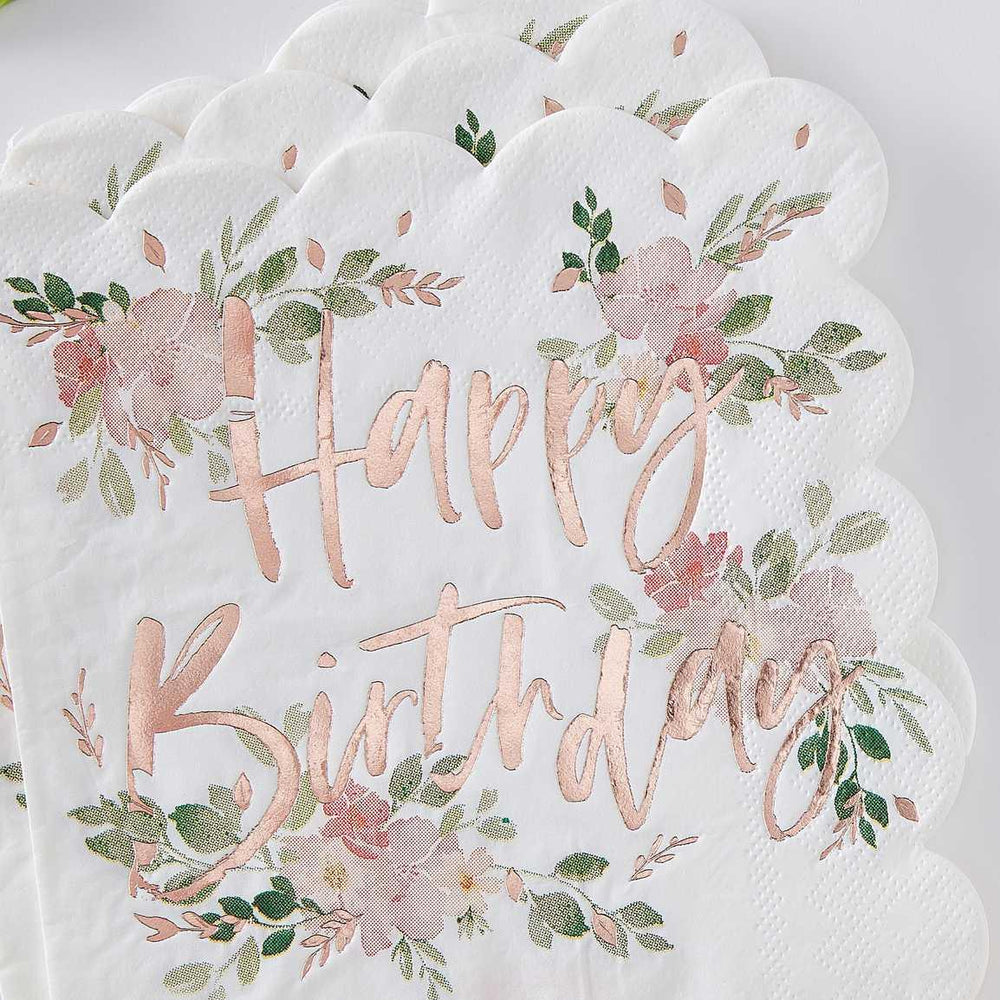 With rose gold script and a floral design, these beautiful Ginger Ray Ditsy Floral Happy Birthday napkins will add instant beauty to any party setting. Mix and match them with other items in our floral range for a nature-inspired party.