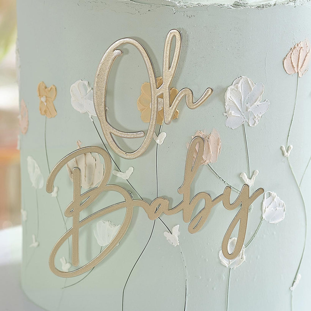 Add gold accents to the table with our Ginger Ray 'Oh Baby' cake topper decoration. The perfect finishing touch to your baby shower, this Oh Baby cake topper is the perfect addition to your baby shower cake decorations!