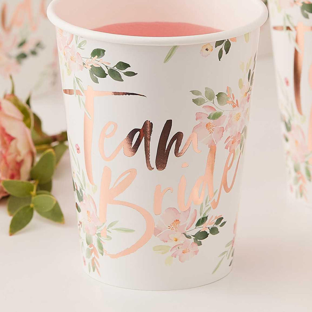 Use these gorgeous rose Ginger Ray gold foiled Floral Team Bride cups to create a sophisticated floral Hen Party.