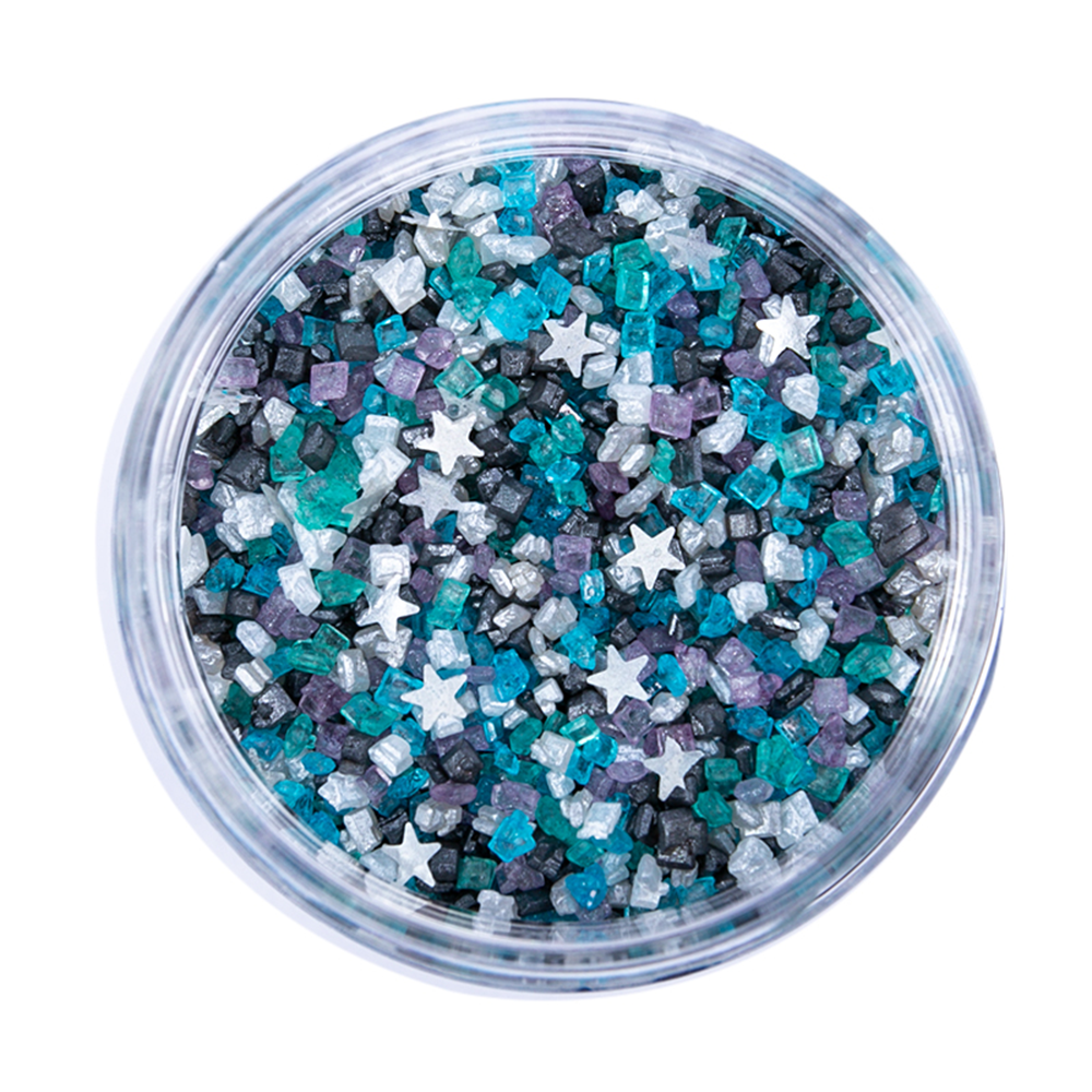 These Galaxy Glitz Sprinkles will elevate your baking to celestial heights. With shades of blue and purple sugar sand and sprinkles with silver stars, these sprinkles are perfect for decorating and garnishing desserts, cookies, scones, cakes, muffins, and sweets. Great way to add some sparkle to a Space, Matariki, Unicorn or Mermaid party.