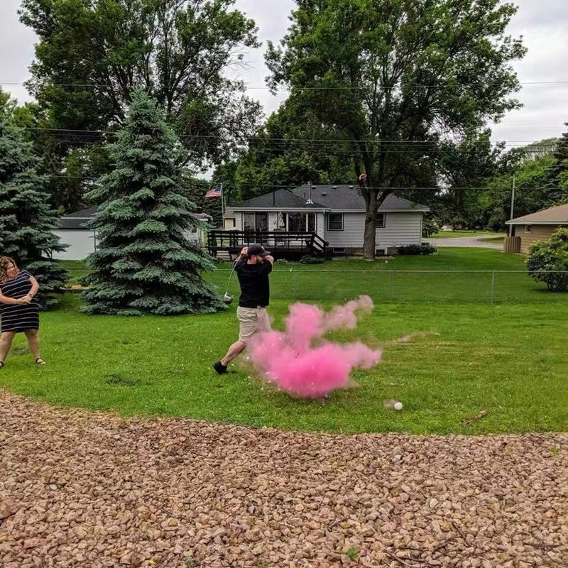 Hit off your gender reveal party with this fun Gender Reveal Golf Balls Set. These golf balls are filled with coloured rice powder that break open on impact revealing a puff of pink or blue smoke. A smashing good way to reveal the gender of your baby to your friends and family!
