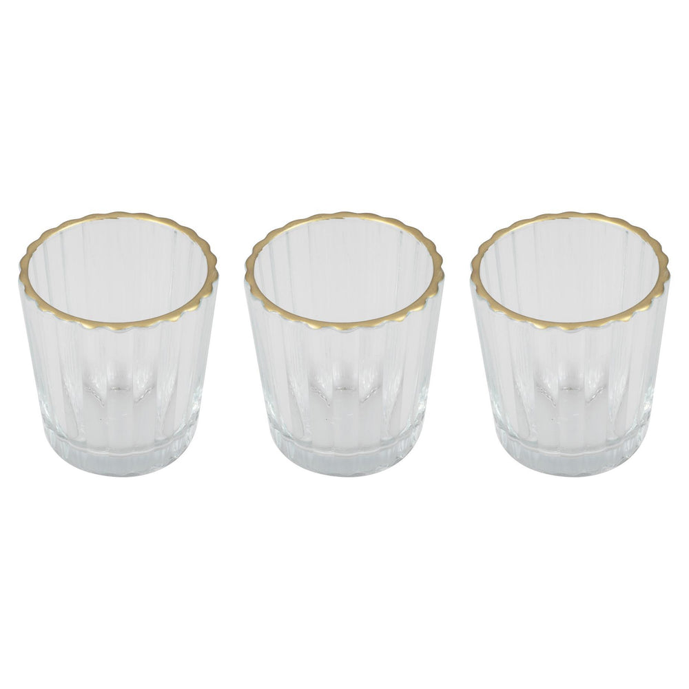 4 x pack of tealight holders in ribbed glass with gold rim, 5.5cm (H) x 3.8cm (W)