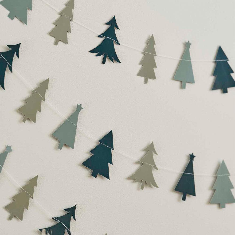 Eco-friendly and stylish, this collection of Christmas trees are strung along the garland to create a modern display.
