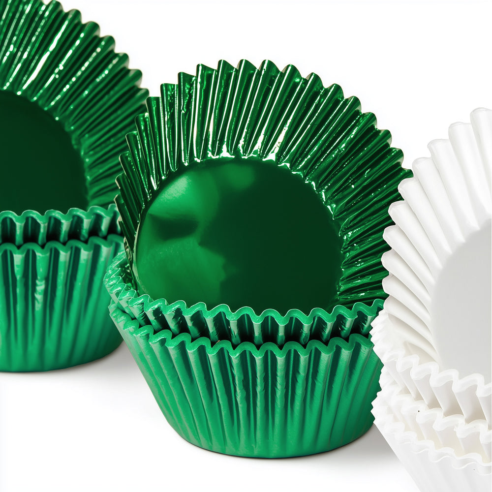 Bake your cupcakes in style with these trendy Green Foil Baking Cups. A versatile option for many party themes.