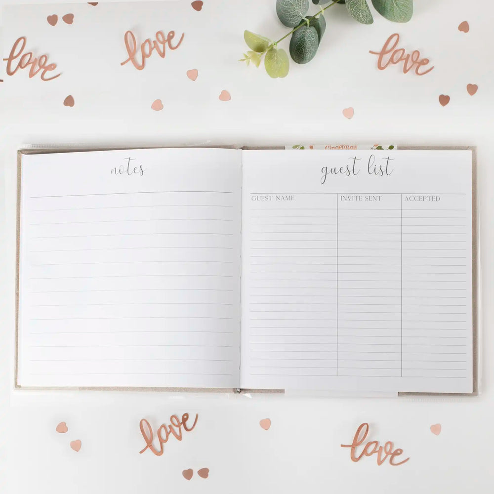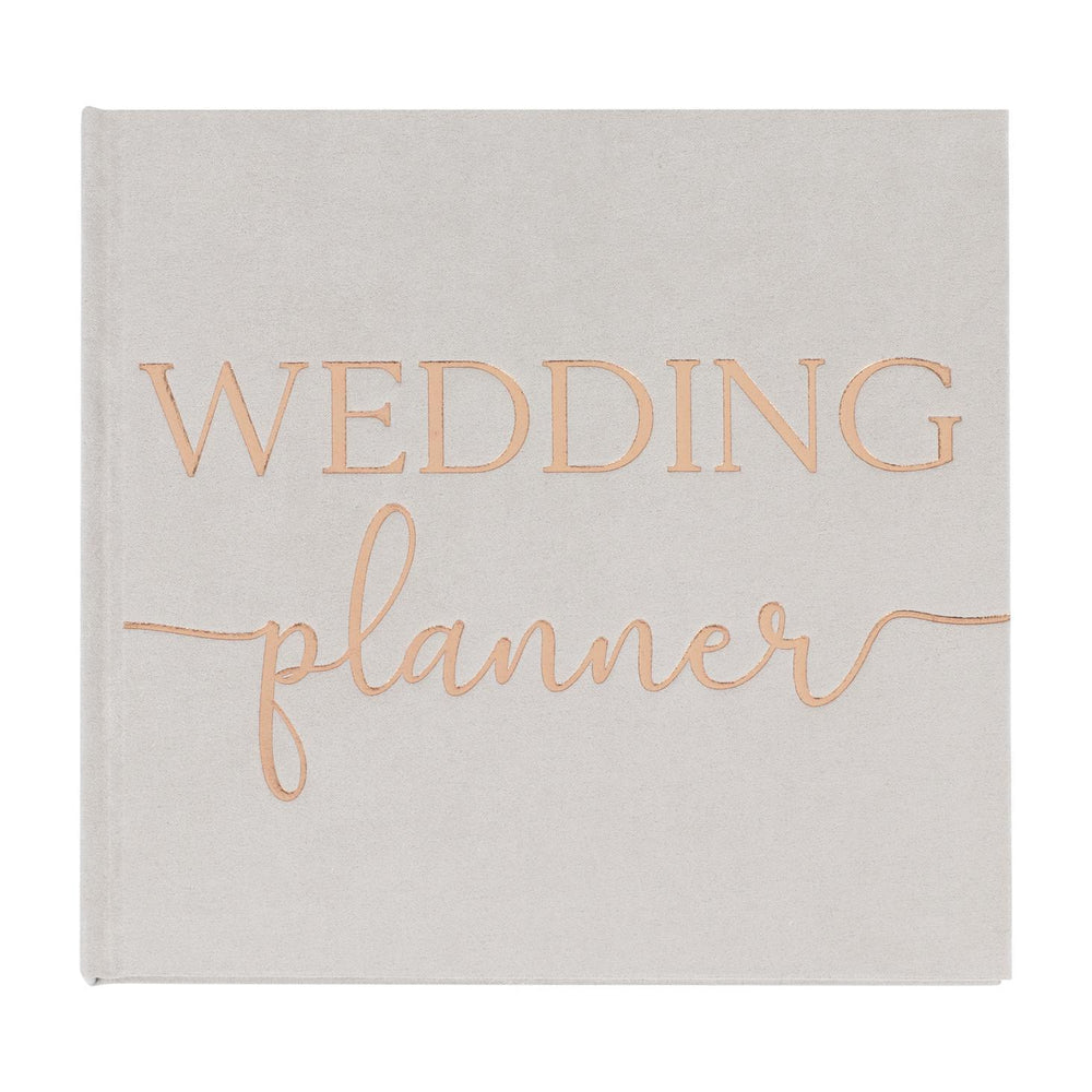 Our Ginger Ray Grey Suede Luxury Wedding Planner Book is the perfect way to get prepared for the special day. The elegant rose gold foil scripted writing shimmers across the soft suede making for a truly luxurious wedding planner.