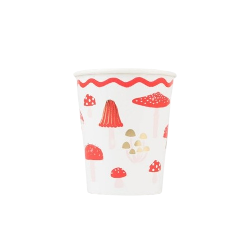 These paper cups, with cute toadstools, an elegant red wavy detail with a hint of pink and stylish gold foil detail, are ideal for a woodland, fairy or Christmas party.