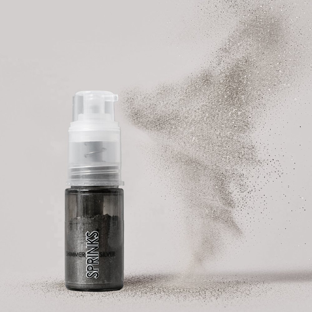 Make your creations extra special with a hint of silver shimmer. Pump up close for a concentrated shimmer or further away for an overall sparkly finish. The edible micro fine dust comes in a handy pump spray bottle, making application easy.