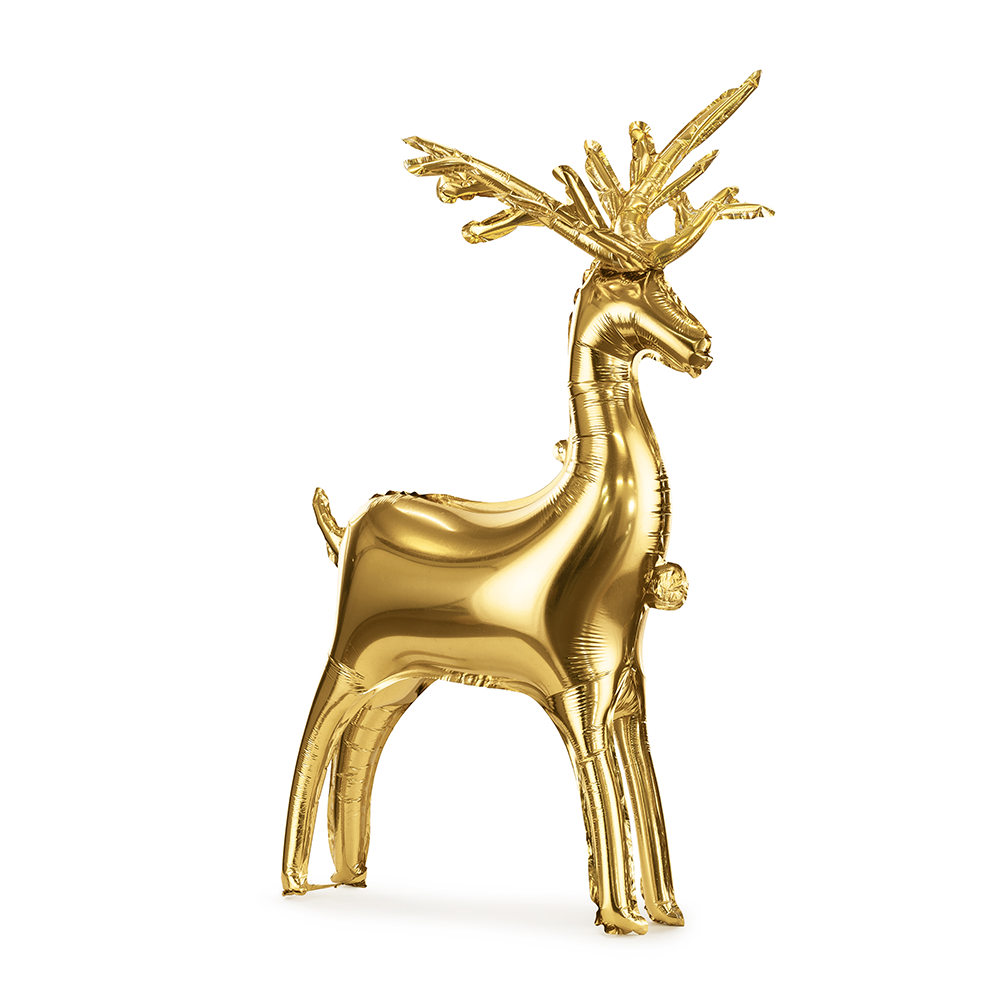 Add a touch of festive elegance to your celebrations with this stunning Standing Gold Reindeer Foil Balloon. Standing tall, this reindeer balloon is ideal for your entranceway, around the Christmas tree or as a photo backdrop.