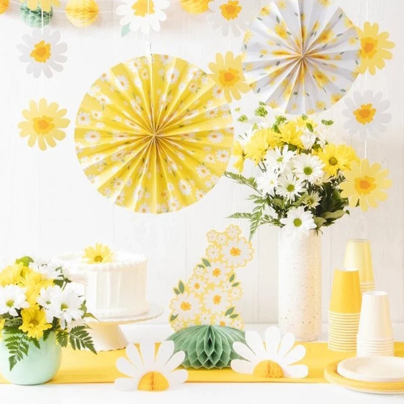 Pair your Sweet Daisy hanging decorations with matching plates, cups, napkins, and tableware to create a beautifully coordinated celebration that guests will adore.