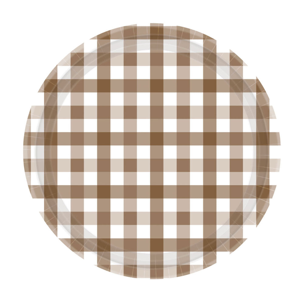 Bring timeless charm to your table with these Teddy Brown Gingham Plates. Featuring a soft brown and white gingham pattern, these plates are perfect for picnics, garden parties, birthdays, or any celebration with a touch of rustic style. Made from sturdy paper, they’re as practical as they are pretty—ideal for serving cake, snacks, or party meals with ease.