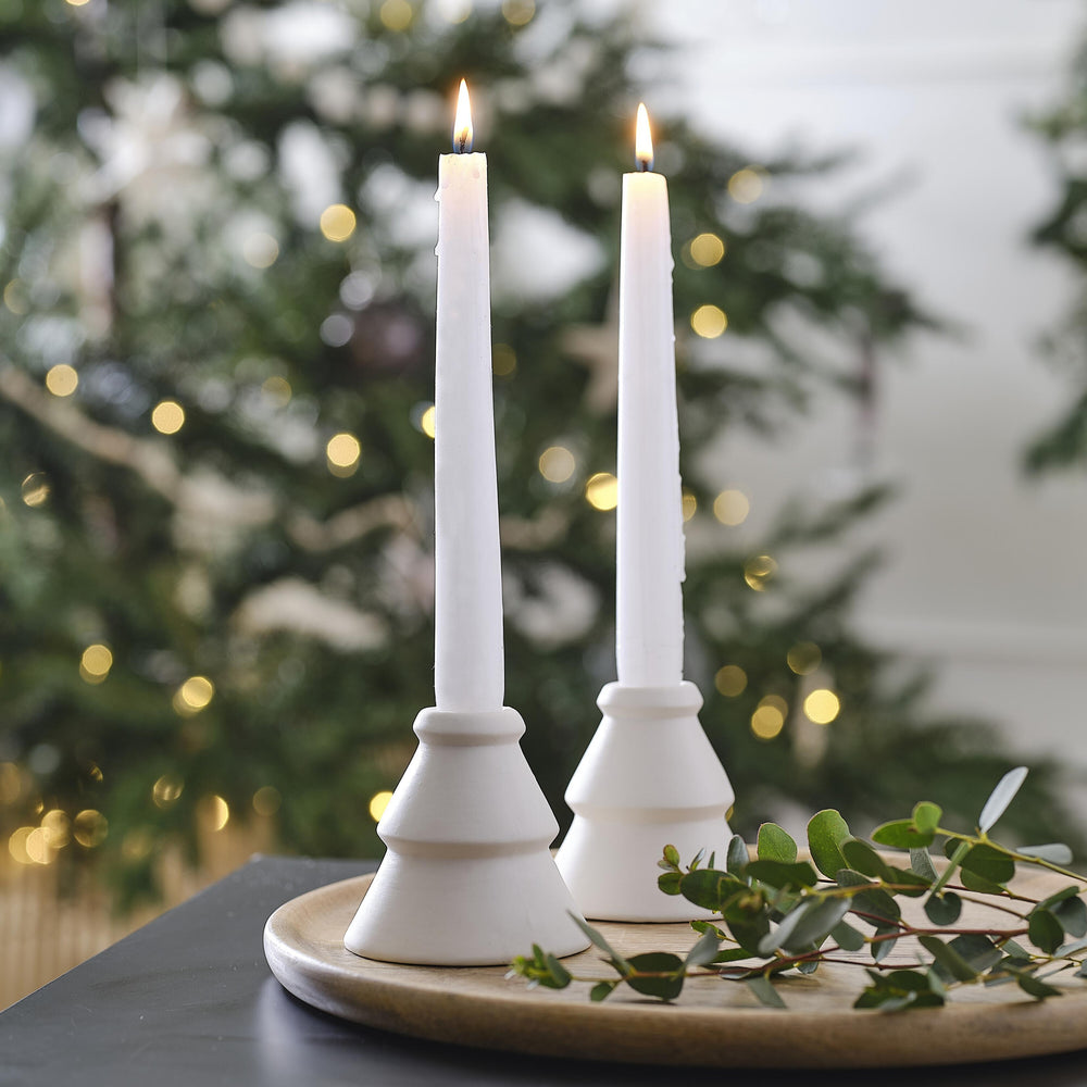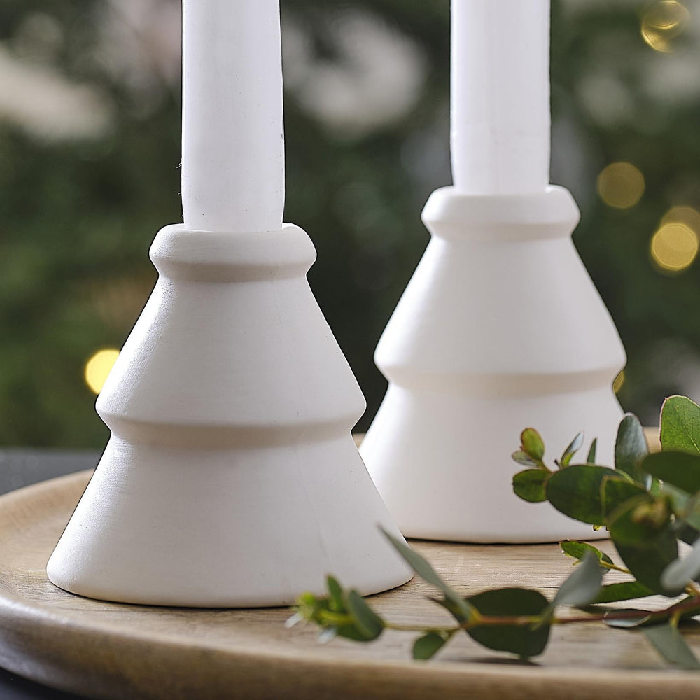 Add a festive touch around your home with these Ginger Ray White Ceramic Christmas Tree shaped candle holders.