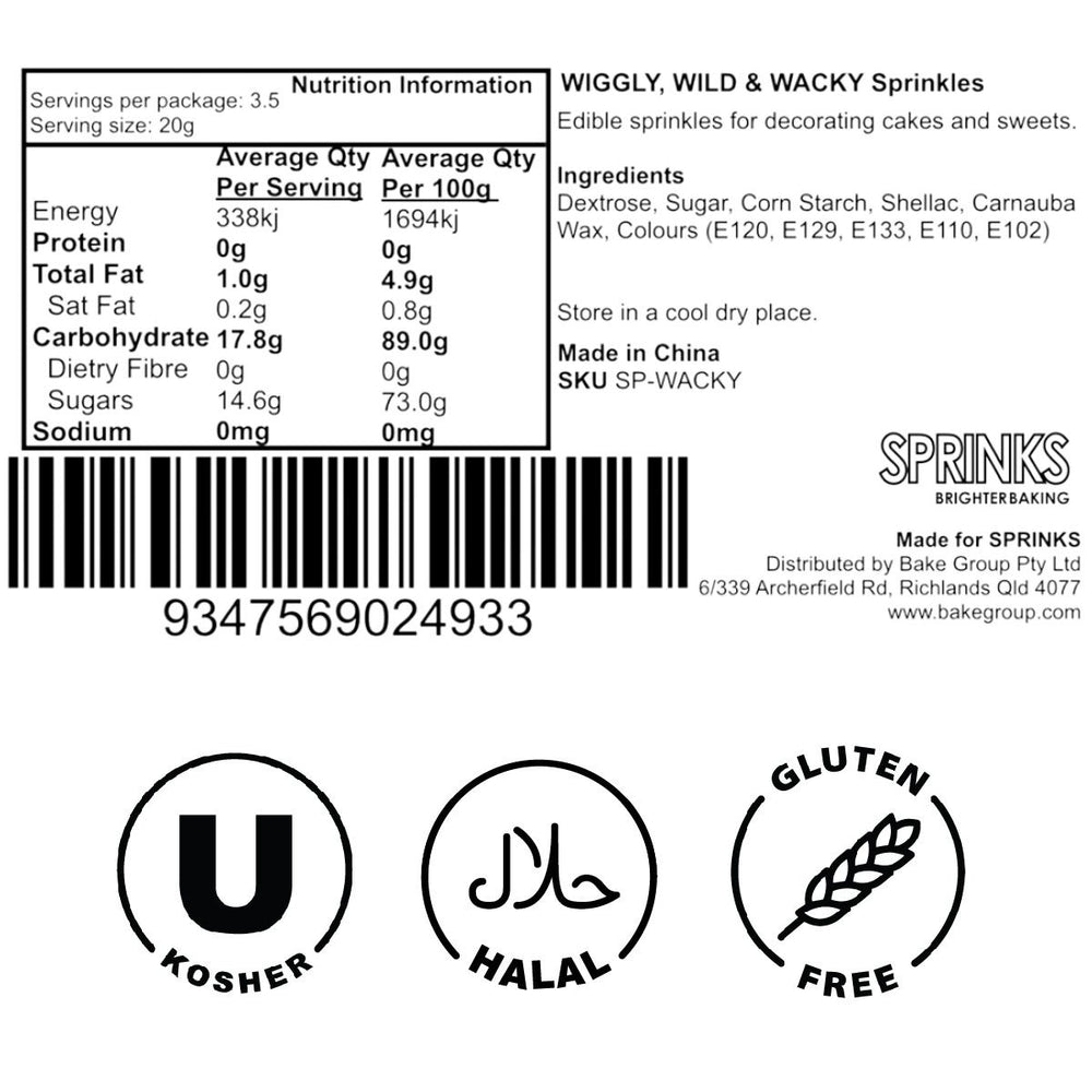 Turn up the fun on your desserts with Wiggly, Wild & Wacky Nonpareils Sprinkles! These vibrant, colourful sprinkle balls bring energetic colour and playful texture to cakes, cupcakes, cookies, doughnuts, and more.