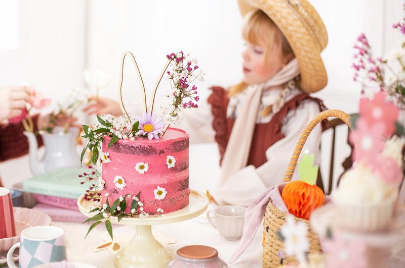 Create a cute bunny theme cake with this stylish Wooden Bunny Ears Cake Topper. This bunny ear shaped cake topper is perfect for decorating a rabbit cake for a bunny party, some bunny is turning 1 or an Easter celebration.