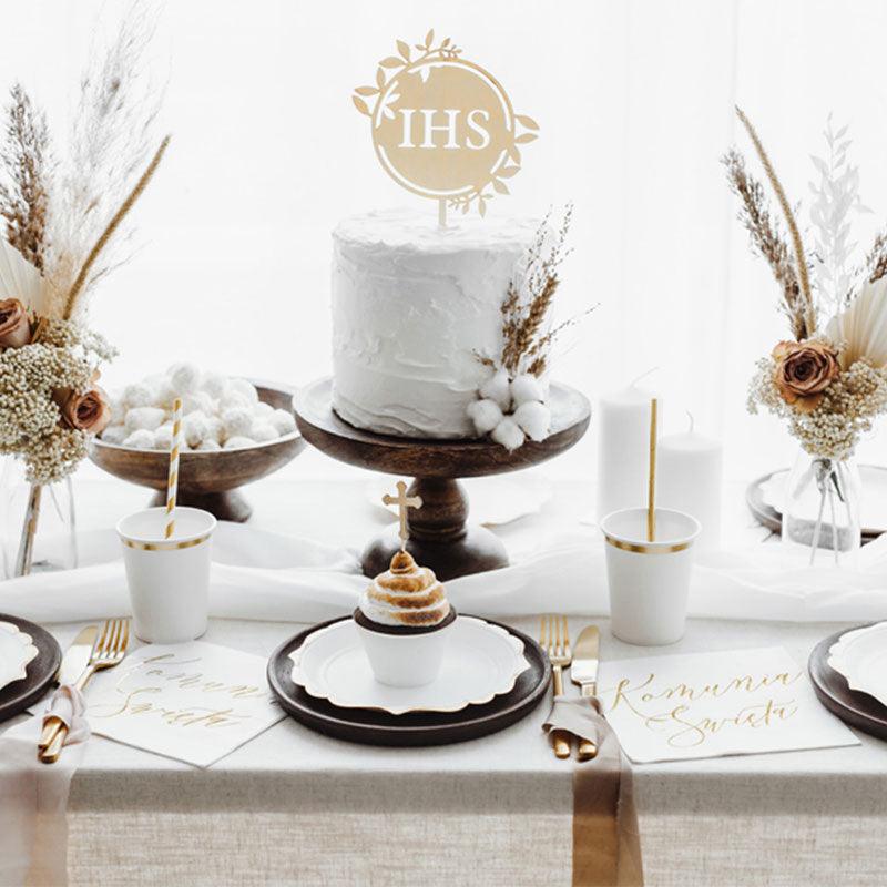 Celebrate your christening or baptism with this Wooden IHS Cake Topper. The letters IHS represent Jesus' name.