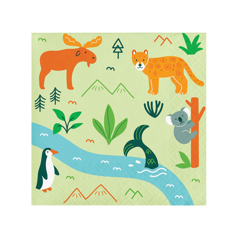 Add a wild and colourful touch to your party table with these World Adventure Beverage Napkins! Featuring vibrant designs with jungle animals, maps, and adventure-inspired details, they’re perfect for birthdays or safari-themed parties.